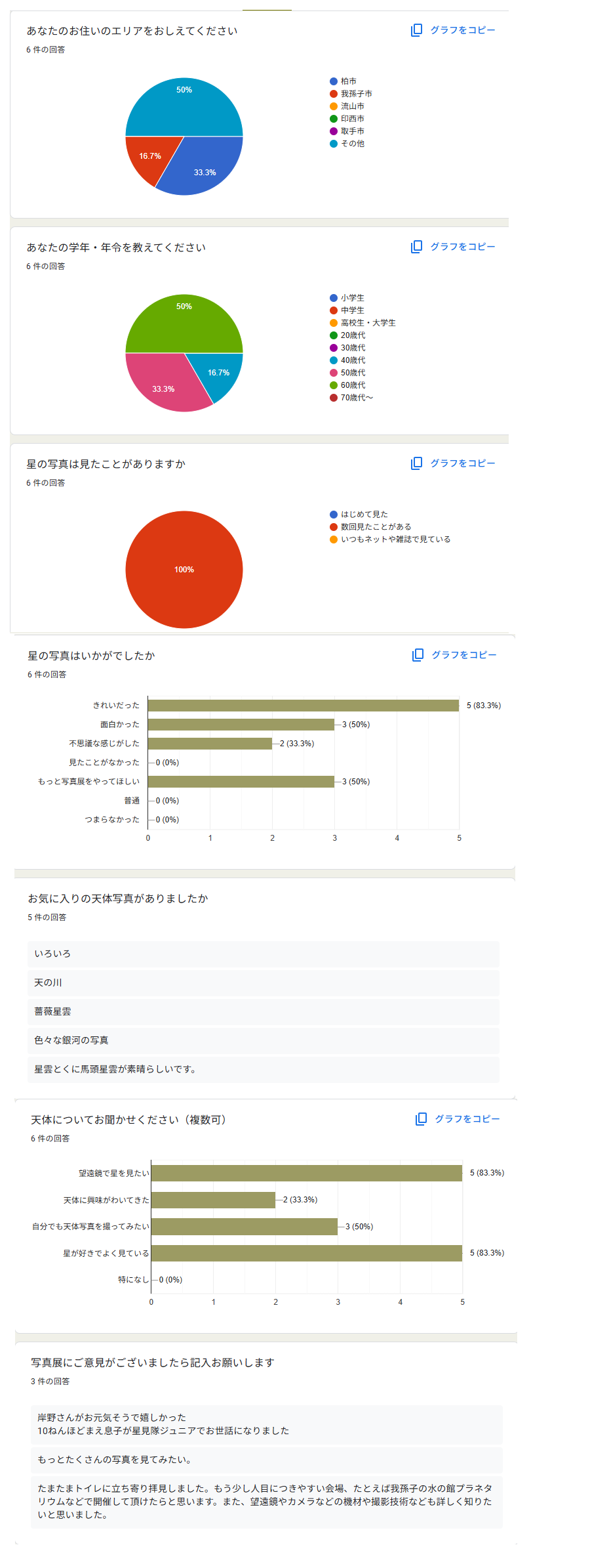 柏市道の駅しょうなん天体写真展 アンケート・ご感想